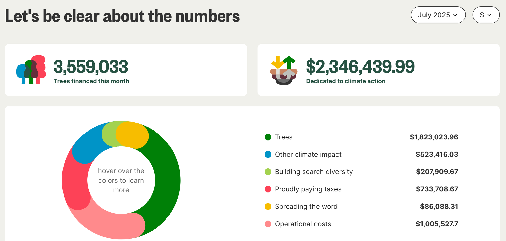 Ecosia’s mission is locked-in as it’s a steward-owned company. It also provides super-transparent financial reporting.
