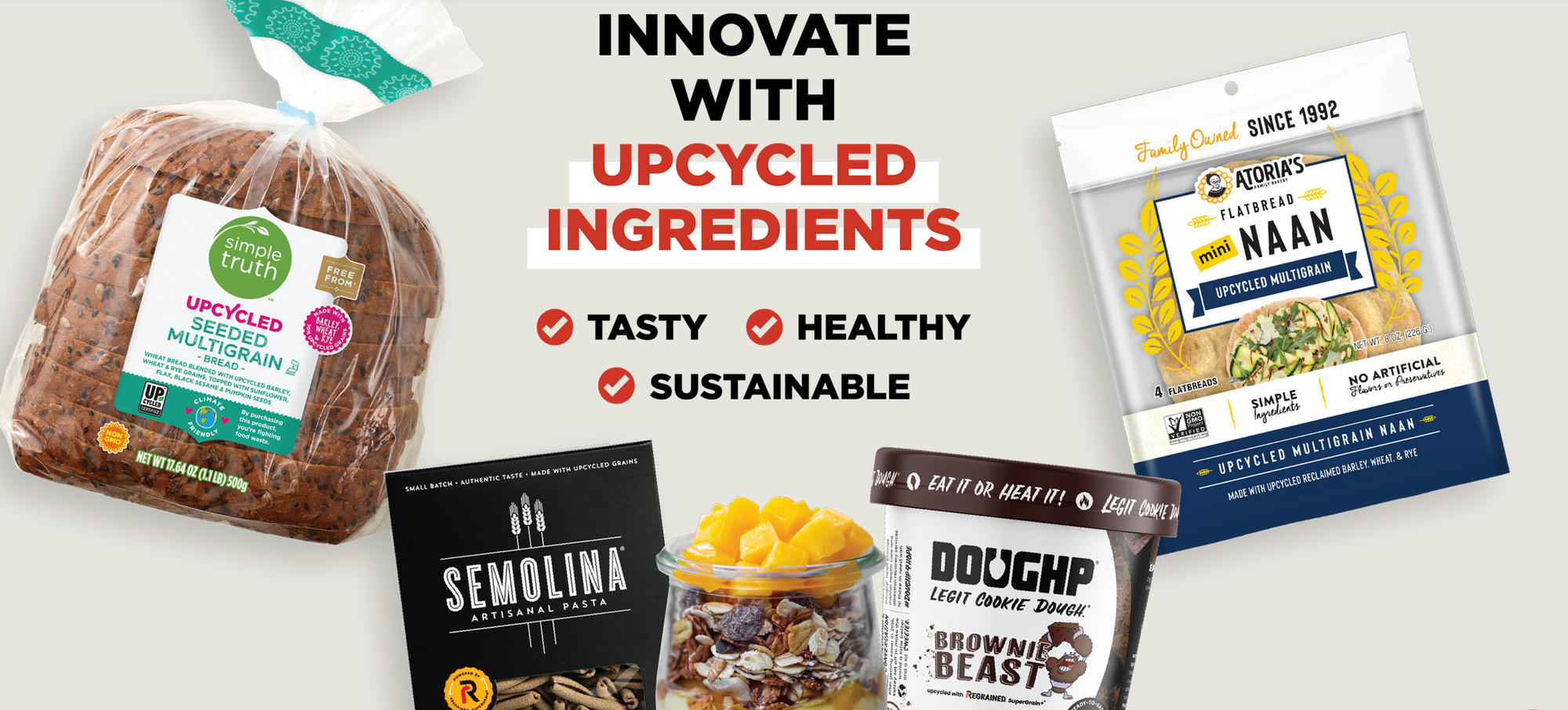 When we started the company with a focus on brewers’ grain, ReGrained worked as both a company and product name. As we expanded our scope to take what we learned from brewers’ grain and apply it to potentially countless other overlooked and undervalued supply chains, we needed a company name that reflected that. ReGrained then became a flagship product brand underneath the Upcycled Foods, Inc. platform. With UP, Inc. we can then launch additional product brands as we continue to expand our commercial ingredient portfolio.