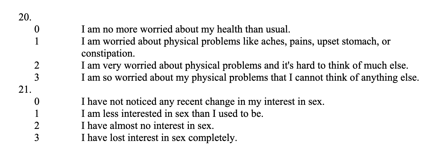 On another, the Beck’s Depression Inventory, I had a score of 14 – which puts me in the category of mild mood disturbance. Again, not tops, but a long way from being bad – your mental health progressively deteriorates up to a top score of 63 – and some of my points were earned simply by being older.