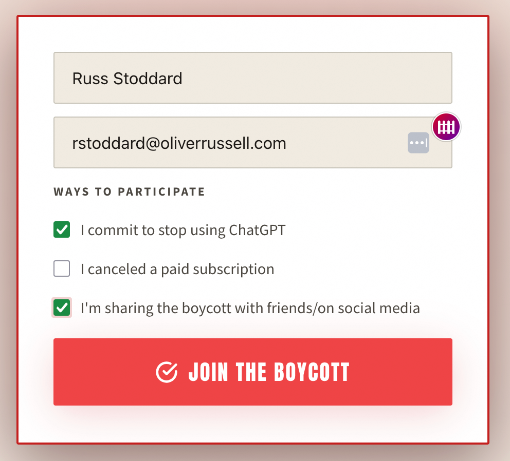 The other boycott I’ve studied is QuitGPT, initiated by a grassroots group of activists concerned about our democracy. It proposes a singular action: Quitting OpenAI’s ChatGPT, with the rationale that OpenAI and its executive team are President Trump’s biggest donors. In addition, ICE uses their technology for its operations. So far, this effort says that more than 1.5 million people have quit ChatGPT via its website.