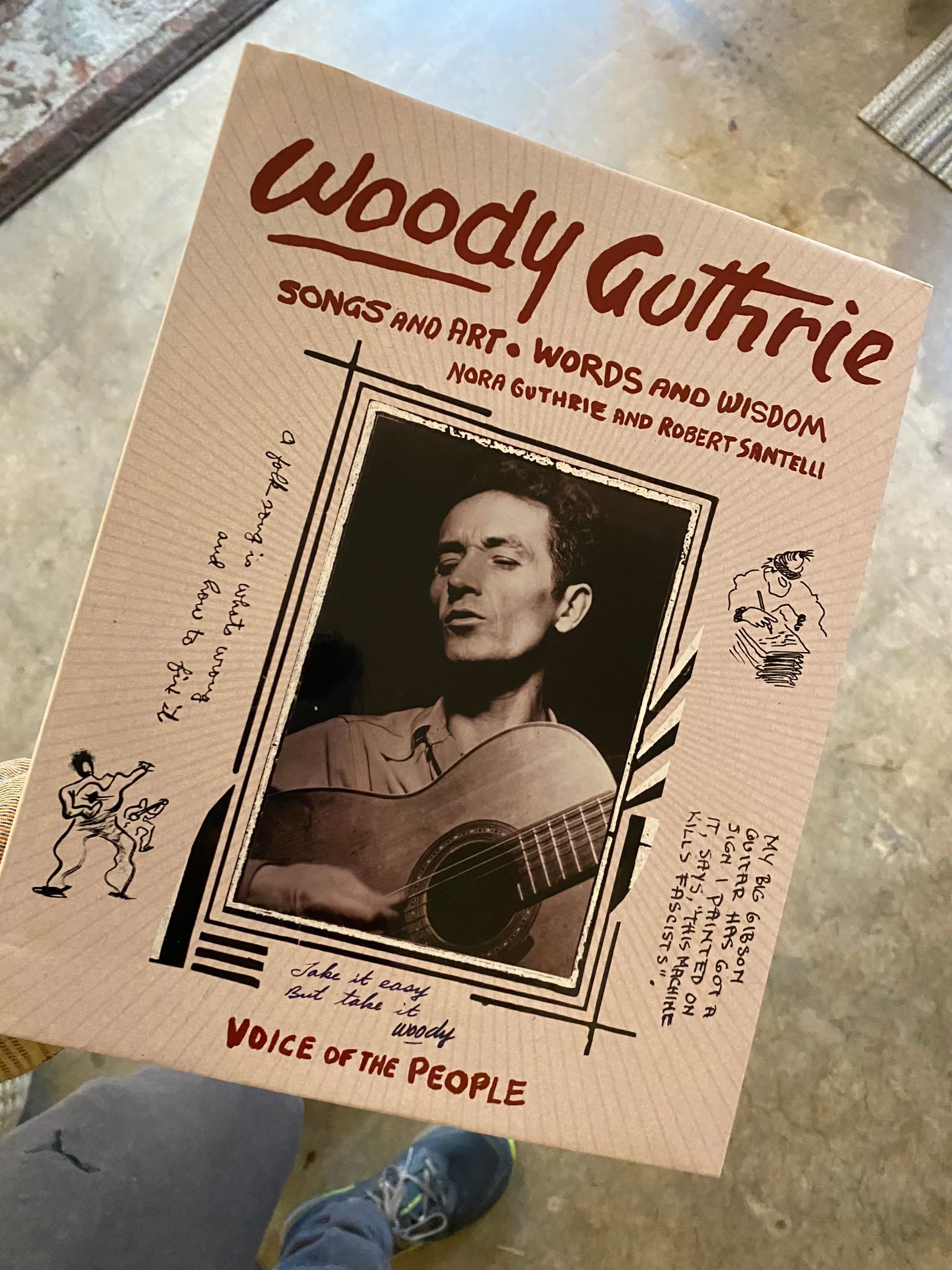 Beyond my annual lovefest with Woody’s resolutions, he’s been showing up in the zeitgeist of My Own Private Idaho this year; over the holidays my wife gifted me one of my favorite birthday presents ever, Woody Guthrie: Songs and Art, Words and Wisdom, and as I am writing this, the algorithms have made me aware that U2 (another all-time fave) was honored recently with the Woody Guthrie Prize for exemplifying Woody’s social consciousness and musical legacy. Past honorees have ranged from Pete Seeger to Pussy Riot. If you’re of a mind – and I always am for this – you can listen here to Bono and The Edge play an acoustic set at the honors ceremony.