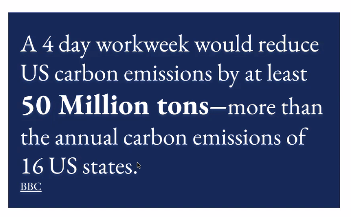 Been thinking about a four-day work week? Well, think about it again from a different prism than the dreamy one you're likely using. According to the British Broadcasting Corporation, if the United States moved to a four-day work week it would save the equivalent total yearly carbon emissions of how many states?